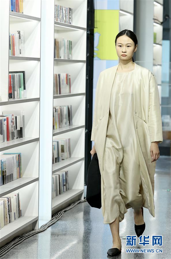 5月5日,模特在北京坊Pageone書店舉行的中國國際時(shí)裝周(2020/2021秋冬系列)“Beauté Comme Toi·姜月&CLEANFLOW·陳文熙”時(shí)裝秀上展示時(shí)裝。 新華社記者 陳建力 攝