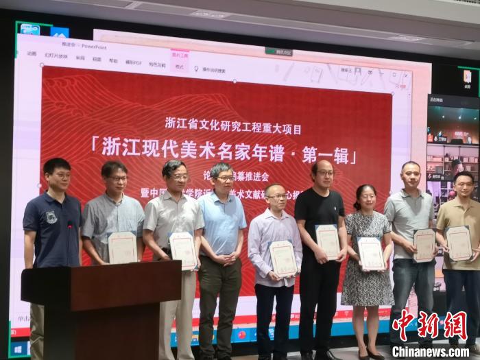 中新網(wǎng)杭州7月10日電 (童笑雨)7月10日,《浙江現(xiàn)代美術(shù)名家年譜(第一輯)》編撰推進(jìn)會(huì)在浙江杭州舉行。據(jù)悉,該項(xiàng)目計(jì)劃編撰八位浙江現(xiàn)代美術(shù)家年譜,分別為黃賓虹、潘天壽、林風(fēng)眠、常書鴻、張書旂、陸維釗、陳之佛和倪貽德。