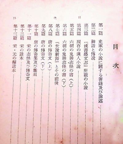 日本巖波書店出版的日文版《中國小說史略》目錄,增田涉譯