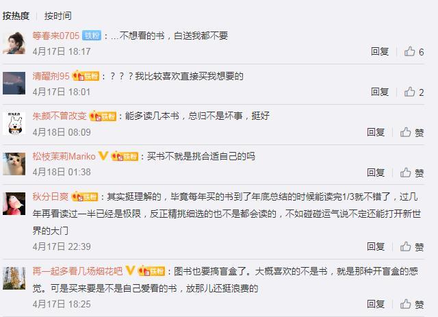 此前,部分網(wǎng)友在中新經(jīng)緯微博評論對“圖書盲盒”現(xiàn)象開展討論。有網(wǎng)友提到,“其實挺理解的,畢竟每年買的書到了年底總結的時候能讀完1/3就不錯了,過幾年再看讀過一半已經(jīng)是極限,反正精挑細選的也不是都會讀的,不如碰碰運氣說不定還能打開新世界的大門。”也有網(wǎng)友認為,“不想看的書,白送我都不要”“買書不就是挑合適自己的嗎”等等。