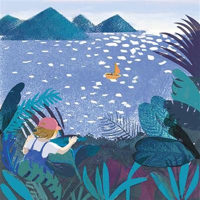 在遠(yuǎn)離故鄉(xiāng)的城市里,我的心無(wú)處可去。身處故鄉(xiāng)的時(shí)候,我們總眼望遠(yuǎn)方,“然而/那未知的風(fēng)景才是我向往的/哪怕它已落花滿地/哪怕它已人去樓空”。我喜歡這四句,因?yàn)樗欠N平靜而堅(jiān)決的向往,寥寥幾句卻直透人心。這首詩(shī)的配圖是樹叢中的孩子遠(yuǎn)眺平靜湖面上一艘小船,粼粼的湖面像藍(lán)灰色的操場(chǎng)一樣平實(shí),就像無(wú)聲的邀請(qǐng)。但當(dāng)我們走到遠(yuǎn)方,故鄉(xiāng)又會(huì)成為心頭揮之不去的念想。