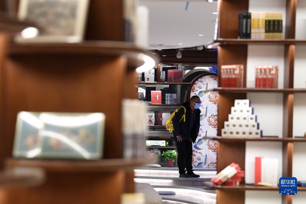 讀者從敦煌書局的書架旁走過(guò)(4月21日攝)。新華社記者 陳斌 攝