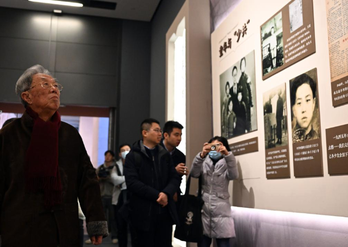 2023年12月21日,作家王蒙(左一)參觀展覽。新華社記者 金良快 攝