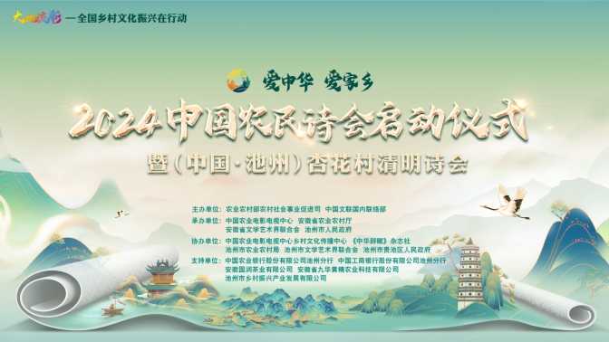 大地流彩,詩賦“三農(nóng)”。3月31日,“大地流彩—全國鄉(xiāng)村文化振興在行動”重點活動“愛中華愛家鄉(xiāng)”2024中國農(nóng)民詩會啟動儀式暨(中國·池州)杏花村清明詩會在安徽池州杏花村文化旅游區(qū)舉辦,主題為“春和景明詩出池州”。本次活動由農(nóng)業(yè)農(nóng)村部農(nóng)村社會事業(yè)促進司、中國文聯(lián)國內(nèi)聯(lián)絡(luò)部主辦,中國農(nóng)業(yè)電影電視中心、安徽省農(nóng)業(yè)農(nóng)村廳、安徽省文學(xué)藝術(shù)界聯(lián)合會、池州市人民政府承辦。