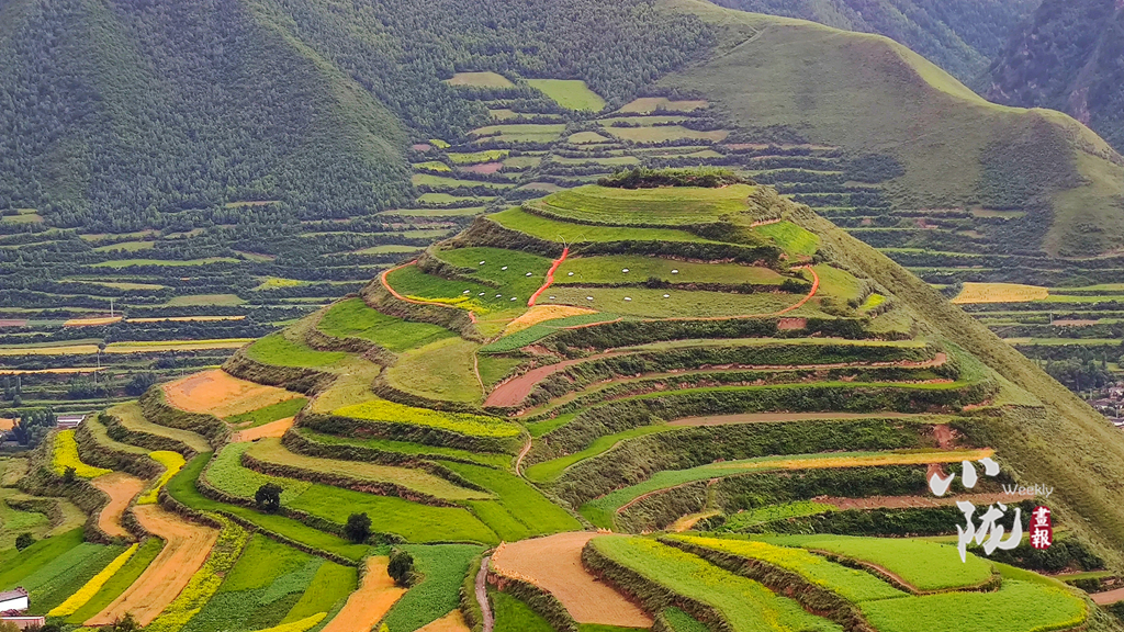 行走在冶力關(guān),目之所及皆是美景,在半山腰上向遠(yuǎn)處眺望,只見(jiàn)遠(yuǎn)山層巒疊翠,云蒸霞蔚,梯田綠黃交錯(cuò),如詩(shī)如畫(huà)。