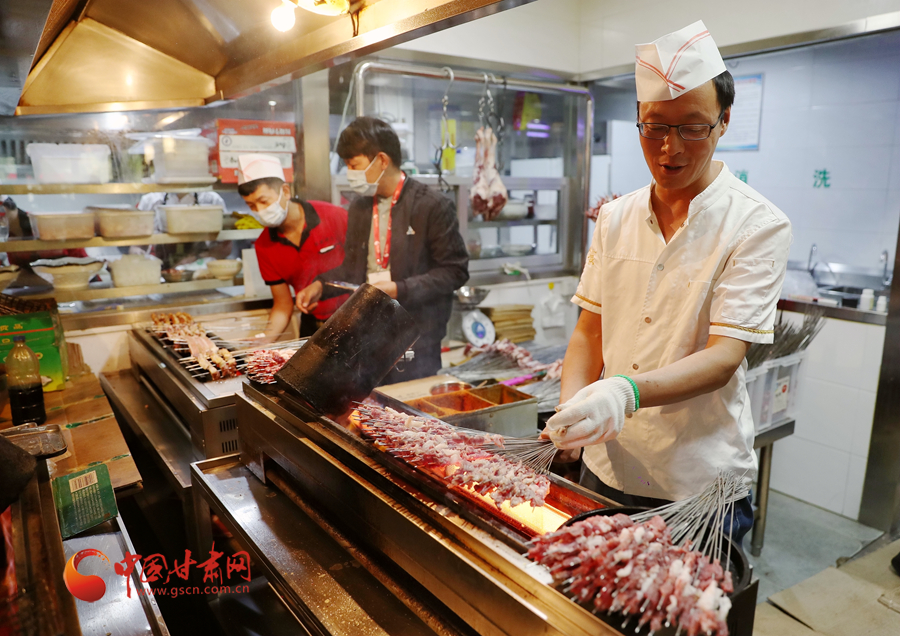 中國(guó)甘肅網(wǎng)9月23日嘉峪關(guān)訊(本網(wǎng)記者 任磊 宋芳科) 嘉峪關(guān)的夜晚從一把烤肉開始,就像蘭州人的牛肉面,烤肉是每一個(gè)嘉峪關(guān)人記憶中的“城市味道”。從魏晉壁畫磚中關(guān)于烤肉場(chǎng)景的描繪,到今日遍布大街小巷的嘉峪關(guān)烤肉店,這種最為原始的食物加工方式在今天已經(jīng)沉淀為當(dāng)?shù)鬲?dú)特的“烤肉文化”。