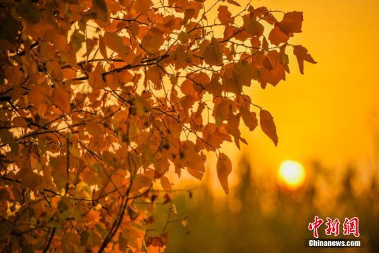 圖為夕陽下胡楊秋色。 王斌銀 攝
