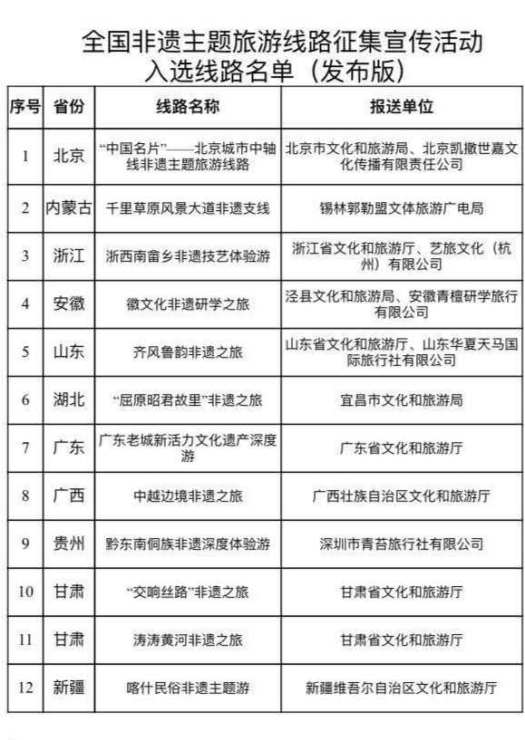 “全國非遺主題旅游線路征集宣傳活動”入選線路名單