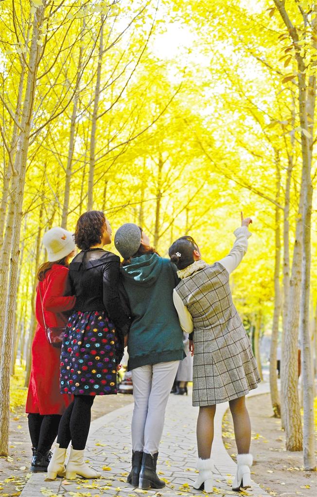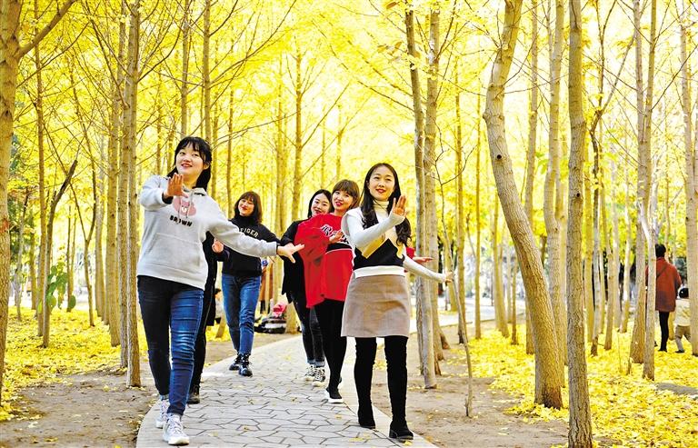 近日,蘭州植物園的銀杏樹金黃一片,吸引眾多市民前去游玩拍照。秋高氣爽,藍天白云下,蘭州植物園內(nèi)銀杏樹進入最佳觀賞期,猶如披上了“黃金甲”,讓魅力無窮的植物園又添新景,金黃色的銀杏樹在陽光的照射下令人陶醉,成為深秋一道迷人的風景。