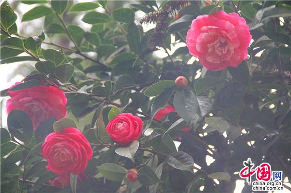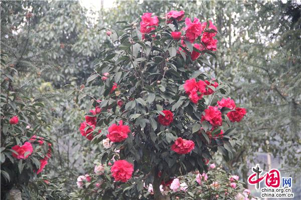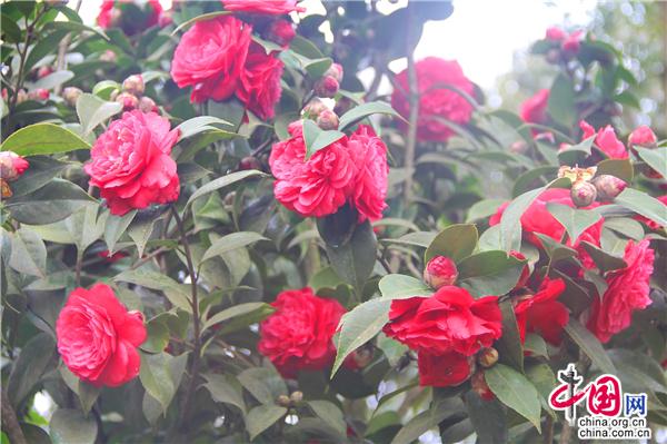 一輪艷陽照四方,一席春風(fēng)綠千山。山茶花是中國(guó)傳統(tǒng)名花,也是世界名花之一。2月21日,朋友相約,從縣城出發(fā),約8公里就進(jìn)入九龍生態(tài)園,姿態(tài)各異的山茶花已進(jìn)入盛花期,樹姿虬勁優(yōu)美,綠葉四季不凋,一朵一朵的茶花大如牡丹,燦如云霞,風(fēng)姿綽約,耀眼生輝!植株形姿優(yōu)美,葉濃綠而光澤,花形艷麗繽紛,美艷了。有的鮮紅如火、有的嬌羞染粉、有的晶瑩潔白……滿園茶花勝景。不經(jīng)意間清風(fēng)吹過,暗香徐來,朵朵花兒隨風(fēng)舞。陽光穿透葉子的縫隙,落在花間小道上,花香彌漫整個(gè)鼻腔,放低自己,品味花香,眼里有花、心里有花,人生就會(huì)像花一樣美麗。