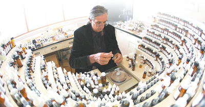 法國一名專業(yè)調(diào)香師在配制香水。資料圖片