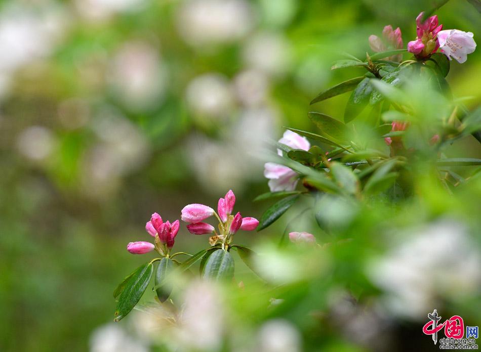3、拍攝時要盡量尋找有能突顯黃山春色的花或嫩葉做前景,拍攝出春意盎然的畫面。