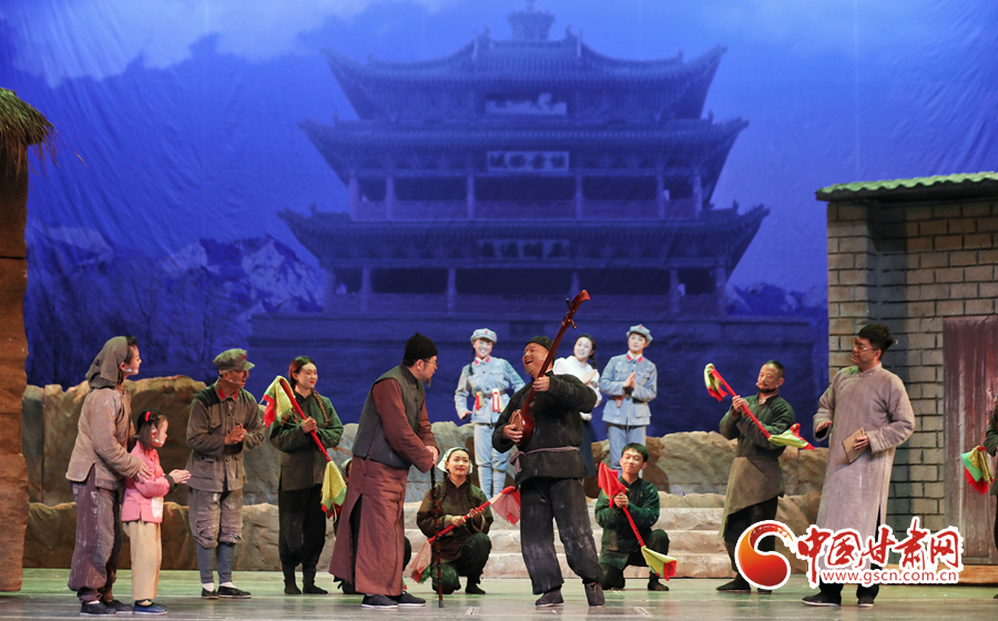 晚間8時,黃河大劇院《焉支花開》演出拉開帷幕,在七律《焉支魂》的歌詞中,一段紅色記憶慢慢走進(jìn)觀眾視線。