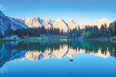 達(dá)爾宗湖四周松柏參天,灌木叢生,湖邊延伸著翠綠如毯的青草地。整個(gè)湖面呈不規(guī)則的葫蘆形,湖水深不可測。它時(shí)而碧波蕩漾,時(shí)而平靜如鏡,宛如嫻靜溫柔的少女。