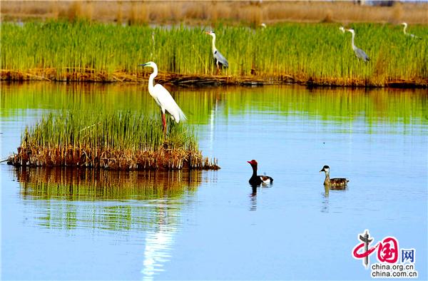 很多鳥類對生存區(qū)域極為挑剔,環(huán)境稍不如意,便會另覓佳處。這里水質(zhì)清冽,空氣純凈,湖草肥美,魚食豐盛,正是很多鳥類遠途中的理想家園或行途驛站。據(jù)悉,全球九條候鳥遷徙路線中有三條路過中國,其中有兩條遷徙路線在寧夏重疊,沙湖以其良好的自然生態(tài)環(huán)境,為眾多候鳥過境寧夏時提供了重要棲息繁衍地。