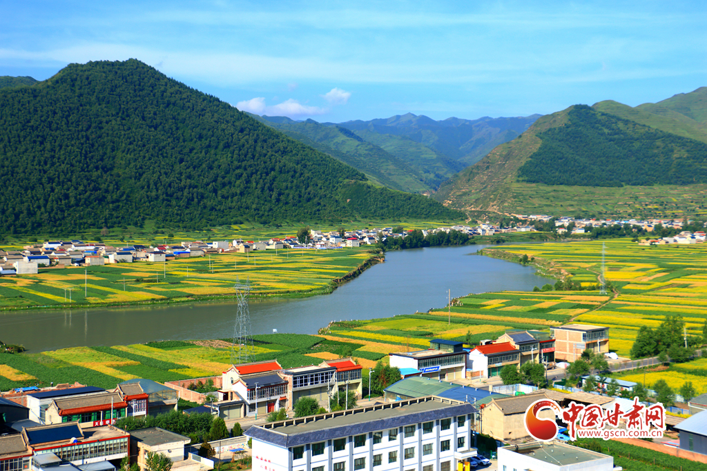 盛夏時(shí)節(jié),岷縣十里鎮(zhèn)洮河兩岸的油菜花競(jìng)相綻放,與民居、山川、林地、豐收在望的各類中藥材相映,構(gòu)成了一幅生態(tài)宜居的田園畫卷,美不勝收。