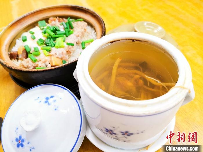 資料圖為特色煲仔飯搭配原盅參絲燉湯,是廣東臺(tái)山部分食客的選擇之一。 中新社發(fā) 李曉春 攝