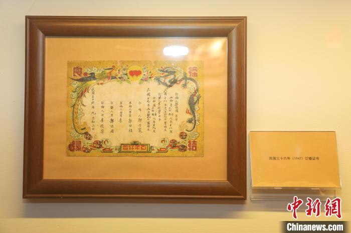 圖為博物館展出的民國時期的訂婚證書。 劉力鑫 攝
