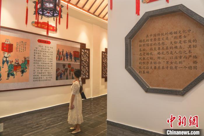 8月4日,正值“七夕”佳節(jié),探訪位于江西南昌青山湖區(qū)婚姻登記處的贛鄱婚俗博物館,一些新人和市民正在參觀展覽。這是江西首個全部以婚俗為主題的博物館,選取了江西各地最具特色的婚俗禮儀進(jìn)行展示,通過不同時期的婚禮習(xí)俗以及婚書、陪嫁的箱子、食盒、電視等老物件,展現(xiàn)贛鄱百姓的民俗生活,喚起人們對傳統(tǒng)婚俗禮儀的記憶。