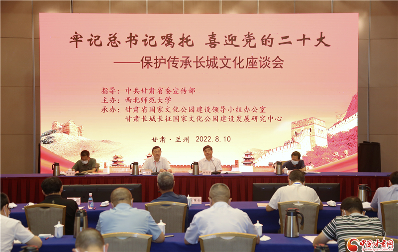 中國甘肅網(wǎng)8月10日訊(本網(wǎng)記者 程健 宋芳科)8月10日下午,由中共甘肅省委宣傳部指導,西北師范大學主辦,省國家文化公園建設領導小組辦公室、甘肅長城長征國家文化公園建設發(fā)展研究中心承辦的“牢記總書記囑托 喜迎黨的二十大——保護傳承長城文化座談會”在蘭召開。省委宣傳部副部長李潤強出席并講話。西北師范大學黨委書記、甘肅長城長征國家文化公園建設發(fā)展研究中心主任張俊宗主持座談會并致辭。