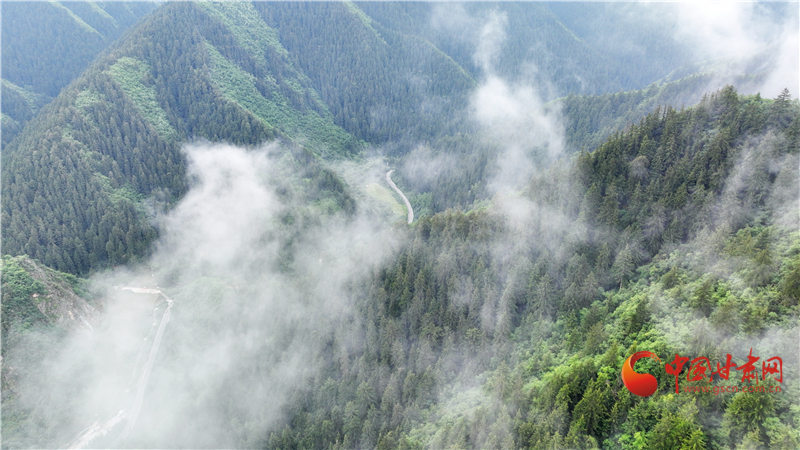 連續(xù)兩日秋雨綿綿,位于榆中縣的興隆山間云霧繚繞蔓延,隨著云霧不斷流動(dòng)、飄浮,群峰也隨之千變?nèi)f化,宛如仙境。
