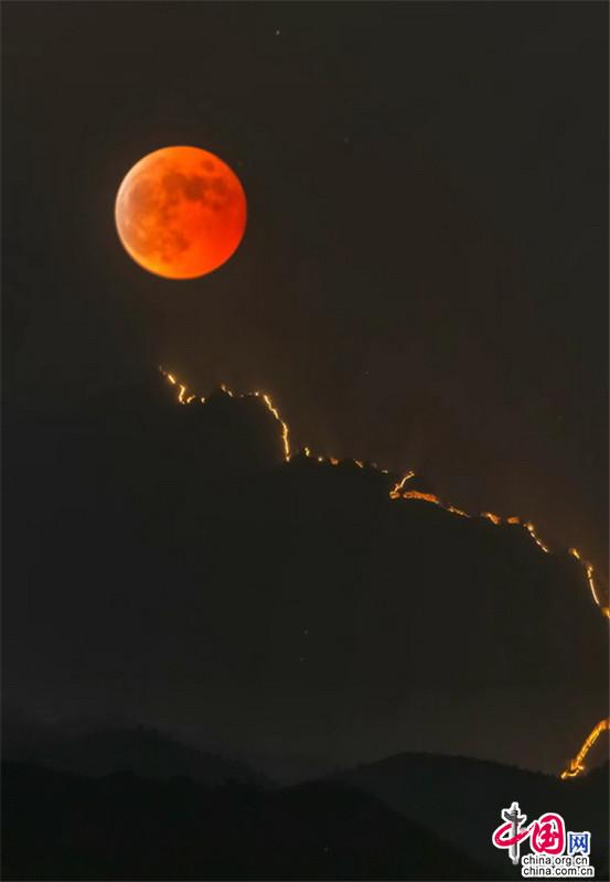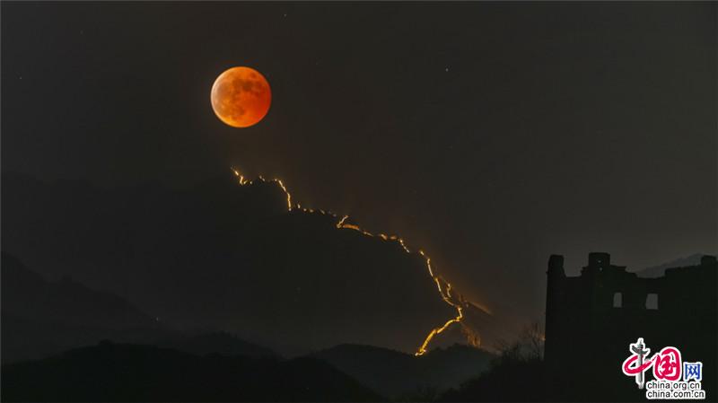 金山嶺長城那一輪超級紅月亮有多浪漫(組圖)