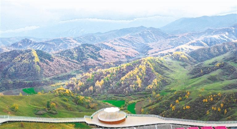 今年以來,臨夏縣圍繞旅游大通道項目,在景區(qū)建設完善步道、觀景臺等基礎設施,帶動旅游產(chǎn)業(yè)發(fā)展。圖為景色如畫的耳子屲梁。 記者 史有東 攝