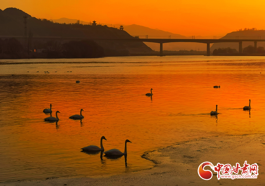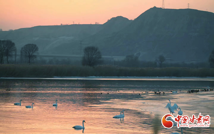 近日,位于蘭州市西固區(qū)達(dá)川鎮(zhèn)的三江口天鵝灘,陸續(xù)飛來天鵝越冬。在一平如鏡的水域,它們或安靜地棲息,或在水中暢游。