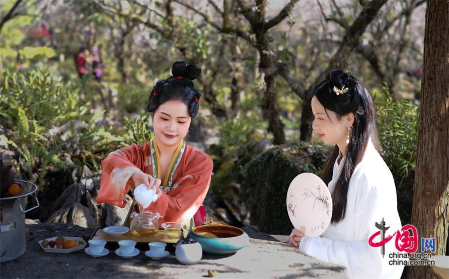 本屆梅花節(jié),采用線上線下并舉的形式,推出“踏梅迎春”游園會、“梅藝傳承”民族非遺市集、“梅語祈福”長生樹祈福、“梅生留影”賞梅打卡、“梅影倩麗”旗袍秀、“梅麗動人”國風(fēng)漢服和民族服裝體驗行、“圍爐煮茶”梅季茶香、“有梅有酒”食在荔波家鄉(xiāng)味、“梅花節(jié)”本土音樂會等一系列豐富多彩的活動,以花為媒,以梅會友,將梅花文化與古風(fēng)古韻、民族文化等相融合,為游客帶來更多全新多元的文旅體驗。