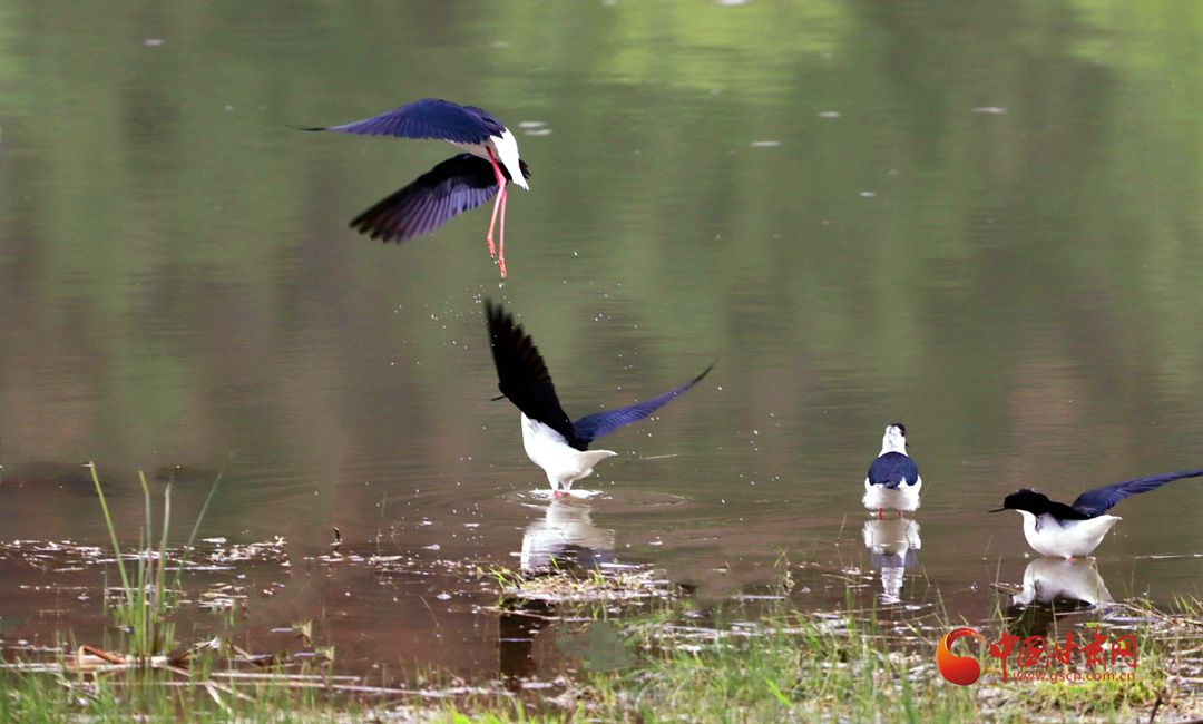 據(jù)了解,這種鳥叫黑翅長腳鷸,是候鳥的一種,春季于4月初至5月初遷來中國北方繁殖地,秋季于9-10月離開北方繁殖地往南遷徙。黑翅長腳鷸是一種涉禽(水鳥中的一類),喜歡成群結(jié)隊,淺水而居,以小昆蟲、小魚、蝌蚪等為食。它還是一種惹人喜愛的水鳥,它的嘴細(xì)長而筆直,體白翅黑,對比分明,身姿綽約、體態(tài)修長,被譽(yù)為“鳥中模特”或者“長腿超模”。