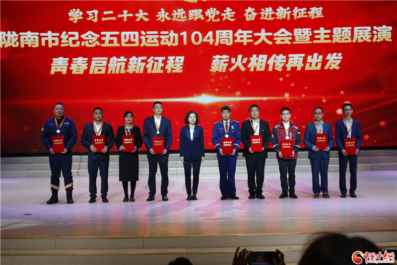 大會表彰了2022年度隴南市五四紅旗團委、五四紅旗團支部,向2022年度隴南市優(yōu)秀共青團員、優(yōu)秀共青團干部頒發(fā)了獎狀,向第11屆“隴南青年五四獎?wù)?rdquo;獲得者頒發(fā)了獎?wù)隆?/p>