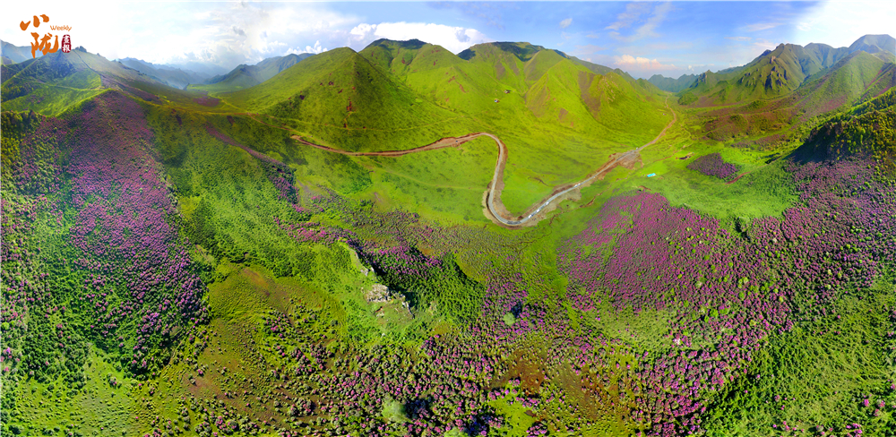 如火如荼綻放的紫色花朵是千里香杜鵑花,在當(dāng)?shù)赜直环Q為枇杷花,每年五、六月份,正值高山杜鵑怒放,形態(tài)各異,色彩斑斕,形成了壯觀、獨(dú)特的高山花海景觀。
