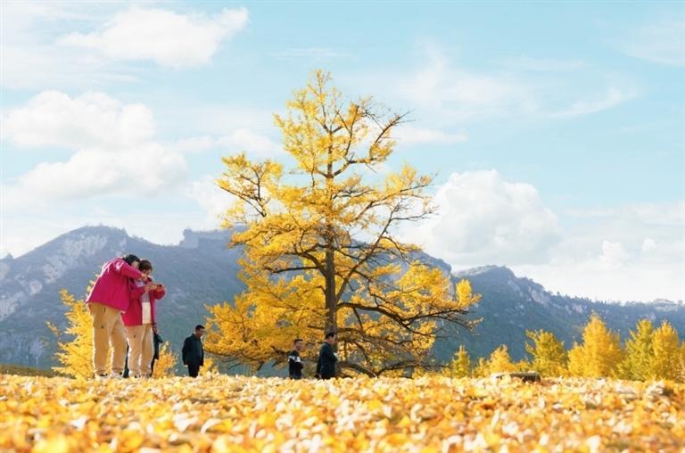 金秋時(shí)節(jié),走進(jìn)徽縣嘉陵鎮(zhèn)田河村,恍若走進(jìn)了金色的仙境。153棵古銀杏樹(shù)滿(mǎn)身金黃,一地落葉似“金色地毯”。銀杏樹(shù)下,品銀杏茶、吃銀杏果、享銀杏風(fēng)情,美不勝收,吸引眾多游客前來(lái)拍照打卡。如今,美麗風(fēng)景變身“美麗經(jīng)濟(jì)”,當(dāng)?shù)匾劳星赉y杏資源優(yōu)勢(shì),引進(jìn)“銀杏夢(mèng)谷”旅游項(xiàng)目,打造集旅游觀光、生態(tài)康養(yǎng)、休閑娛樂(lè)、農(nóng)特產(chǎn)品銷(xiāo)售為一體的美麗鄉(xiāng)村旅游示范點(diǎn),讓千年古樹(shù)煥發(fā)新的生機(jī)。本報(bào)記者 冉創(chuàng)昌 高瓊 攝