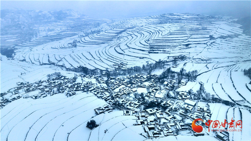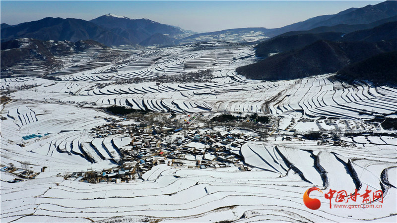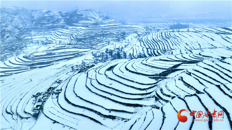 灑向大地,錯落有致的梯田、層巒疊嶂的山峰與落雪交相輝映,繪就一幅冬日盛景。
