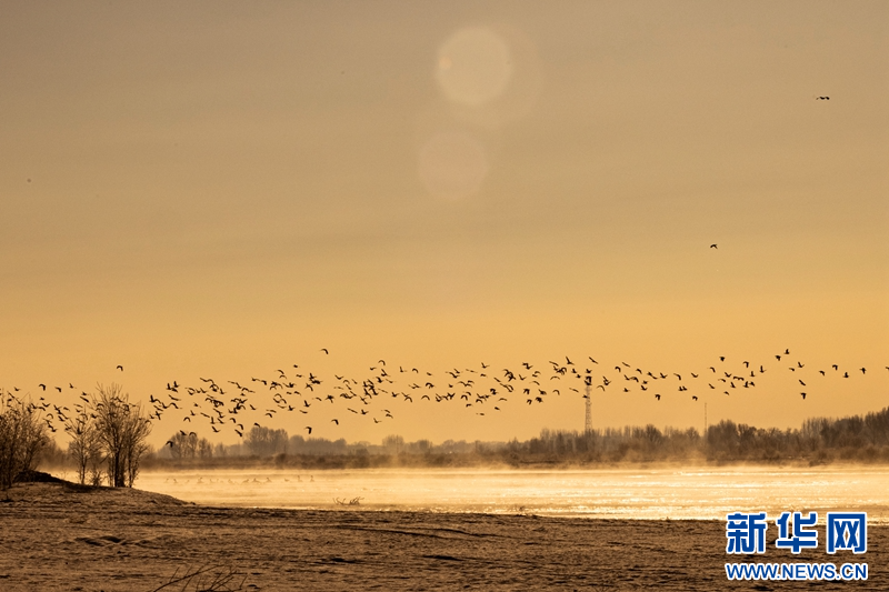 1月21日,冬日清晨,甘肅張掖黑河濕地日出如畫。一輪冉冉升起的紅日絢麗奪目,與河流、樹木、候鳥、晨霧共同構(gòu)成了一幅生態(tài)畫卷。新華網(wǎng)發(fā)(成林 攝)
