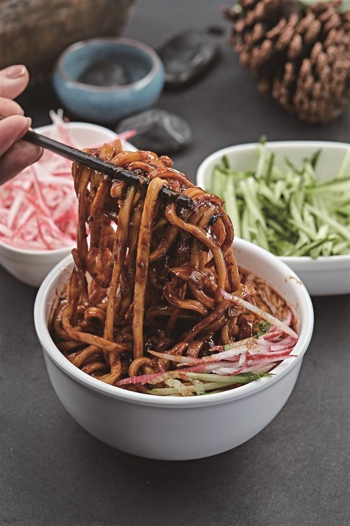 和老北京炸醬面相比,蘭州炸醬面雖然少了時令蔬菜,但是肉醬分量很足,這絕對代表了蘭州人的實在和“碳水之都”的誠意。一口裹上醬汁的面條可以直接“擊碎”饑餓。蘭州人做炸醬用現(xiàn)成的面醬加上肉末、蔥等作為主料,再配以農(nóng)家常見的蔬菜丁,把肉末上鍋烹炒后放入蔥末,再添加調(diào)料炒到半熟加入適當(dāng)?shù)乃每旎馃?,炸醬中加淀粉勾芡使炸醬變得柔滑濃香,再配上筋道的手工拉面澆上炸醬,加上辣椒油,淋一點醋那就濃香四溢了。