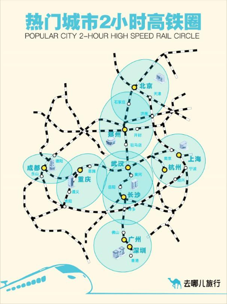 從去哪兒火車票預(yù)約情況來看,2小時(shí)高鐵圈內(nèi)仍是旅客出游的主要目的地。北京2小時(shí)高鐵圈內(nèi),熱門目的地為天津、濟(jì)南、石家莊、秦皇島、大同;上海2小時(shí)高鐵圈,熱門目的地為杭州、蘇州、南京、湖州、寧波。