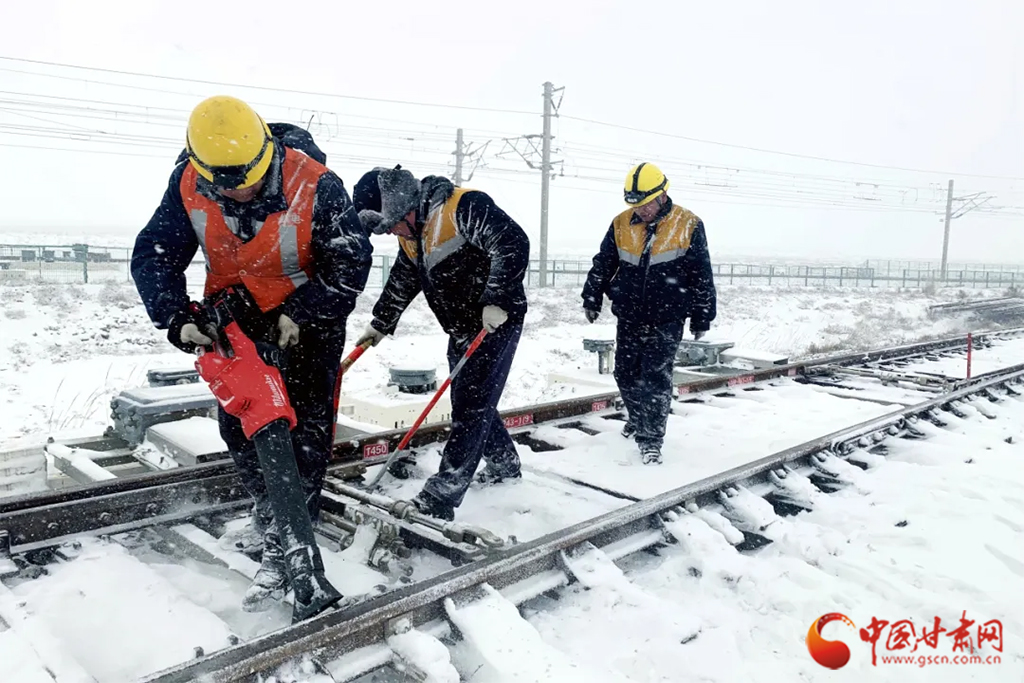 武威工務(wù)段芨嶺、山丹線路車間以雪為令,組織干部職工清掃道岔尖軌、滑床板、轉(zhuǎn)轍機(jī)等關(guān)鍵部位的積雪積冰,確保線路狀況良好。
