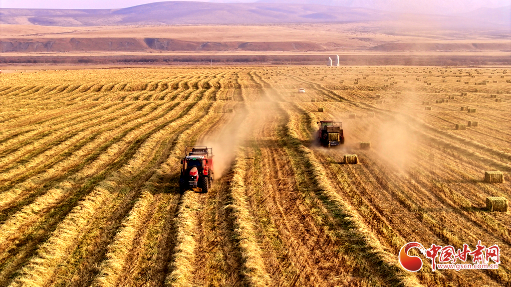 11月11日,甘肅山丹馬場的10萬畝燕麥草進入打包高峰期,田野上呈現(xiàn)出一派繁忙而有序的景象。放眼田間,大型農(nóng)用機械來回穿梭,將燕麥草迅速壓縮、打包,一個個草捆整齊排列。與此同時,滿載草捆的運輸車在田間小道上來回奔波,將成品送往倉庫和銷售地。
