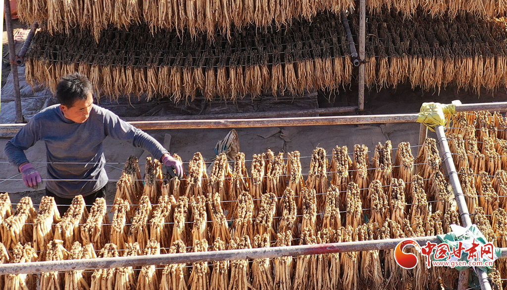 初冬時(shí)節(jié),天氣晴好,走進(jìn)岷縣十里鎮(zhèn),藥香四溢,隨處可見藥農(nóng)利用晴好天氣忙著晾曬中藥材的場(chǎng)景。