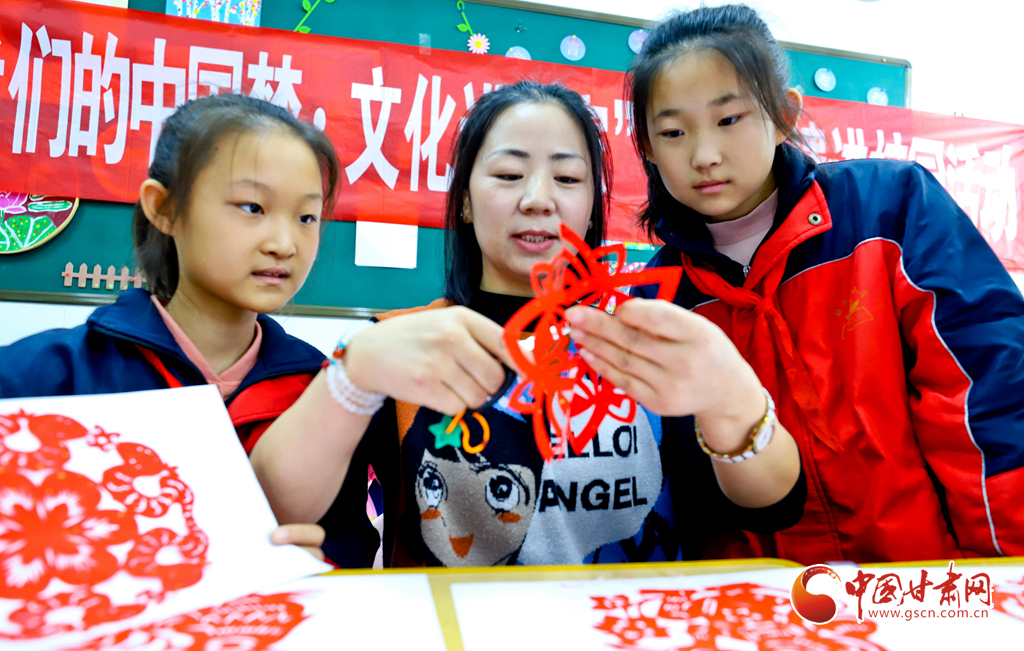 12月4日,張掖市高臺縣非遺保護中心的老師們來到解放街小學,向1800多名孩子們傳授戲曲表演、剪紙、古箏演奏等“非遺”技藝,讓更多師生了解、學習非遺。