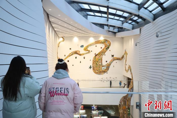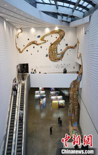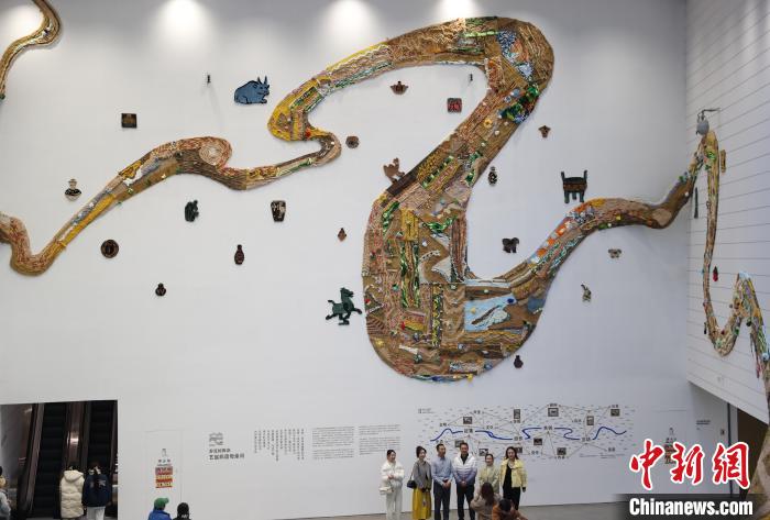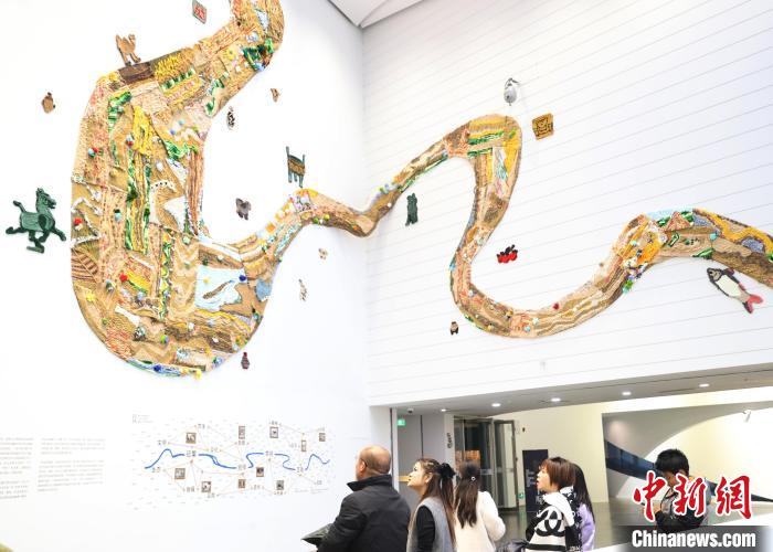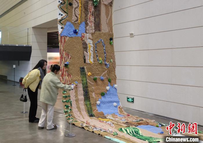 12月8日,市民在寧夏銀川當(dāng)代美術(shù)館欣賞“奔流的舞姿:藝起織造母親河”藝術(shù)展。當(dāng)日,“奔流的舞姿:藝起織造母親河”公益項目藝術(shù)展在銀川當(dāng)代美術(shù)館正式對公眾開放。該項目匯聚了黃河兩岸200余位織手的巧作,按照黃河特點(diǎn)和視覺審美拼接和織造,織造出一個極具視覺效果的“大河”,通過藝術(shù)的橋梁,展示奔涌黃河的優(yōu)美舞姿和不息精神,同時激發(fā)社會各界對黃河生態(tài)保護(hù)的共識與行動。中新社記者 于晶 攝