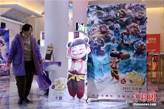 北京一家影院內(nèi)的《哪吒之魔童鬧?!泛?bào)。中新社記者 易海菲 攝