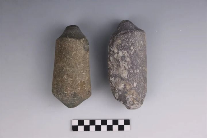 寺洼遺址內出土的馬家窯類型石鉆、石環(huán)半成品。新華社發(fā)(寺洼遺址聯(lián)合考古隊供圖)