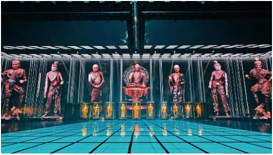 舞美奇觀:運(yùn)用前沿?cái)?shù)字技術(shù),結(jié)合精妙的舞臺(tái)設(shè)計(jì)和燈光效果,在舞臺(tái)上立體還原敦煌洞窟的恢弘與壁畫的精妙,營造如夢似幻的沉浸式觀演體驗(yàn)。