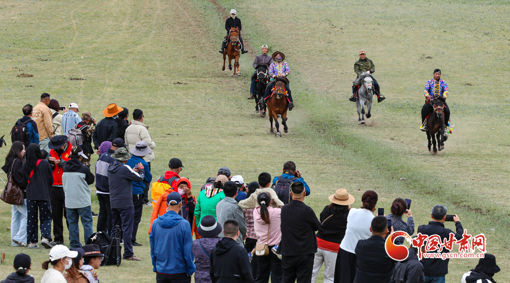 當日,肅南裕固族自治縣“相約康樂草原 體驗民族風情”傳統(tǒng)文化展演活動拉開帷幕,來自肅南縣3個鄉(xiāng)鎮(zhèn)22個村的160多名騎手,自發(fā)匯聚于此,展開大馬賽、小馬賽、圓口賽、對牙賽等精彩賽事,將草原的速度與激情演繹得淋漓盡致,吸引了上海、廣東、安徽、福建等地的萬名游客觀賞賽馬和領(lǐng)略雪山、森林、草原為一體的祁連山美麗景色。