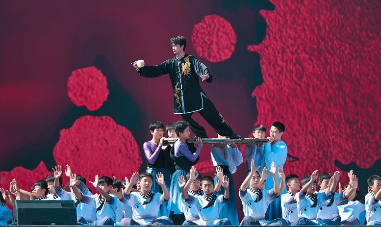 活動伊始,開場片《歡迎乘坐崆峒號》以“環(huán)西部火車游·崆峒號”平?jīng)雎糜螌A袨殪`感,通過跨時空對話串聯(lián)崆峒山古今脈絡,拉開活動序幕?,F(xiàn)場,街舞與崆峒武術(shù)團體合作的《武韻崆峒》展現(xiàn)武術(shù)與現(xiàn)代肢體藝術(shù)新生機;笛子演奏與武術(shù)冠軍聯(lián)袂呈現(xiàn)的《崆音劍影》打造“可聽的武術(shù)”沉浸式體驗;30人陣容的江蘇武協(xié)女子太極拳團體演繹《鶴起崆峒》,詮釋武術(shù)新功用;國風歌手與秦腔表演藝術(shù)家合作的《秦韻長歌》,展現(xiàn)“武戲同源”的多元魅力。