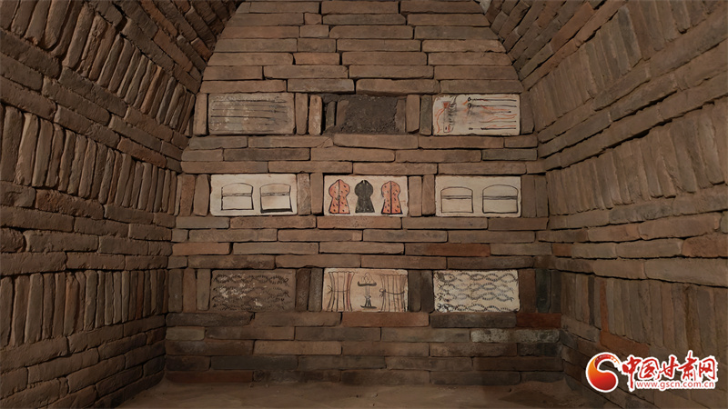 高臺(tái)縣魏晉壁畫(huà)墓,位于駱駝城東南5公里處的戈壁臺(tái)地,該墓曾兩次被盜,90年代后期由甘肅省文物考古研究所與高臺(tái)縣博物館實(shí)施搶救性清理。其中,100多塊彩繪畫(huà)像磚成為學(xué)界焦點(diǎn)。