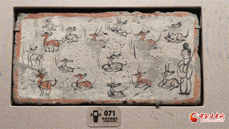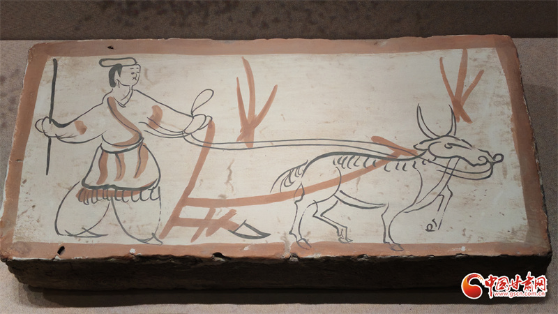 在博物館的“古冢丹青——高臺(tái)魏晉十六國(guó)時(shí)期墓葬壁畫(huà)藝術(shù)陳列”展廳里,記者看到,《二牛耕地畫(huà)像磚》生動(dòng)再現(xiàn)了當(dāng)時(shí)的農(nóng)耕技術(shù):兩頭耕牛架著直轅犁,后隨的男子一手扶犁一手揚(yáng)鞭,展現(xiàn)了典型的“二牛抬杠”耕作方式?!赌谅箞D壁畫(huà)磚》則描繪了古人放牧鹿群的獨(dú)特場(chǎng)景,為研究當(dāng)時(shí)的畜牧業(yè)發(fā)展提供了珍貴資料。
