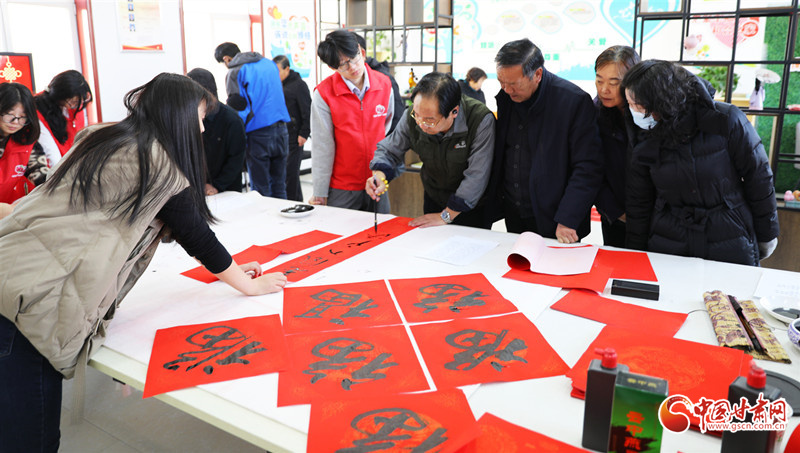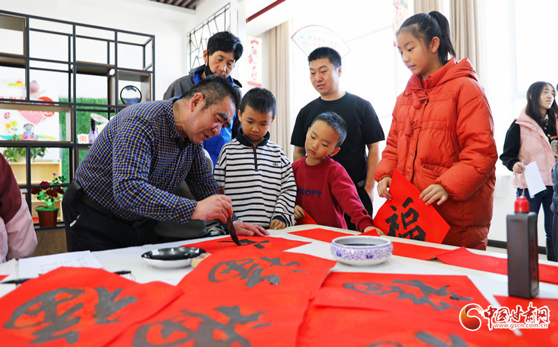 春節(jié)臨近,民樂(lè)縣組織群眾文化志愿者服務(wù)隊(duì)開(kāi)展“翰墨迎春”公益文化活動(dòng),志愿者現(xiàn)場(chǎng)揮毫潑墨書(shū)寫(xiě)春聯(lián),為群眾書(shū)寫(xiě)春聯(lián)和“福”字,讓群眾在家門(mén)口享受“文化大餐”,迎接新春佳節(jié)的到來(lái)。